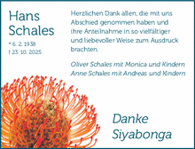 Der Abschied von unserem Vater Hans Schales erfüllt uns mit tiefer Trauer, aber...