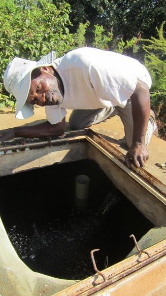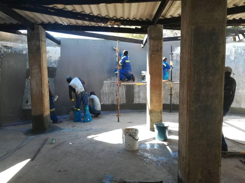 Der von Afrikaprojekt 2009 finanzierte mittlerweile undichte Wassertank wurde mit einer Membran ausgekleidet und wird nun wieder in Betrieb genommen.