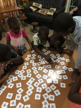 Kinder spielen in Binga das neue Khumbula - Memory - Spiel des Afrikaprojektes.